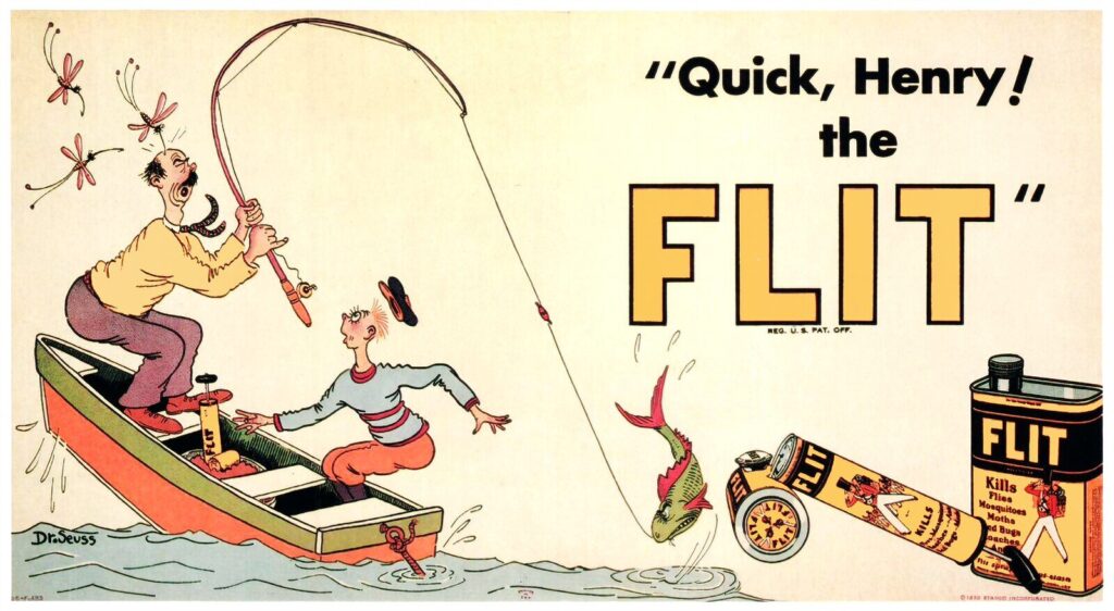 Bu dönemde Geisel’in en önemli çıkışı reklam sektöründe oldu. Özellikle insektisit markası Flit için hazırladığı kampanya, “Quick, Henry, the Flit!” sloganıyla ülke çapında tanındı. Bu kampanyadaki çizimlerde, sinekleri kovmaya çalışan karakterlerin abartılı yüz ifadeleri ve tuhaf görünümlü yaratıklar dikkat çekiyordu. Mizah ve çizgisel abartı sayesinde reklam yalnızca ürün tanıtımı olmaktan çıkıp, halk arasında sıkça tekrarlanan bir deyim haline geldi. Bu başarı, Geisel’i Amerika’nın en aranılan reklam çizerlerinden biri yaptı. Zamanla Standard Oil, General Electric, NBC, Ford ve Holly Sugar gibi büyük markalara da çizimler yaptı.