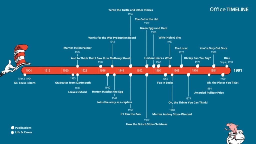 Dr. Seuss, hayatı boyunca 60’tan fazla kitap yazıp resimledi. Kitapları 20’den fazla dile çevrildi ve toplamda 600 milyondan fazla kopya sattı. Çocuk edebiyatına yaptığı katkılar, 1984 yılında ona Pulitzer Özel Ödülü kazandırdı. Yazarlık serüveni boyunca yalnızca hayal gücünü besleyen değil, aynı zamanda toplumsal mesajlar içeren eserler ortaya koydu. Hayatının son yıllarını Kaliforniya’nın La Jolla kentinde geçiren Dr. Seuss, 24 Eylül 1991’de 87 yaşında hayata veda etti. Bugün ardında bıraktığı miras, yalnızca milyonlarca satılan kitaplarla değil, aynı zamanda nesiller boyu çocuklara okumayı sevdiren bir edebiyat anlayışıyla yaşamaya devam etmektedir.